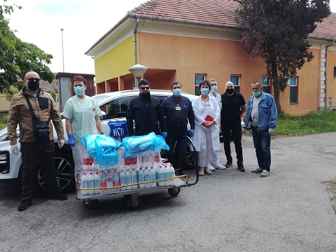 Чланови Независног синдиката Полиције уручили су 4. маја донацију нашој Болници која садржи преко сто литара асепсола и педесет литара медицинског алкохола,хируршка одела и униформе за медицинске техничаре.